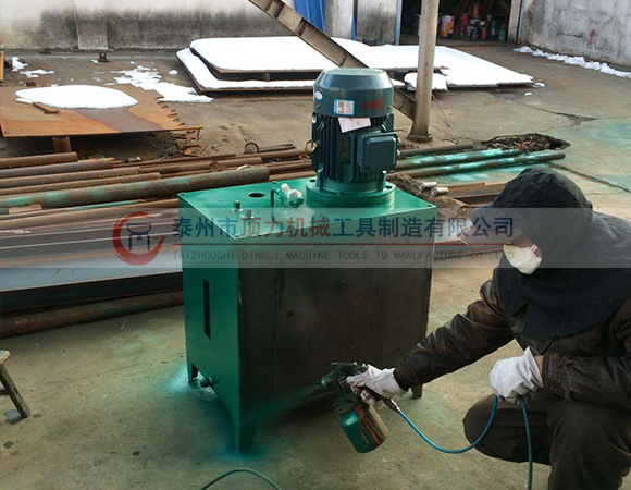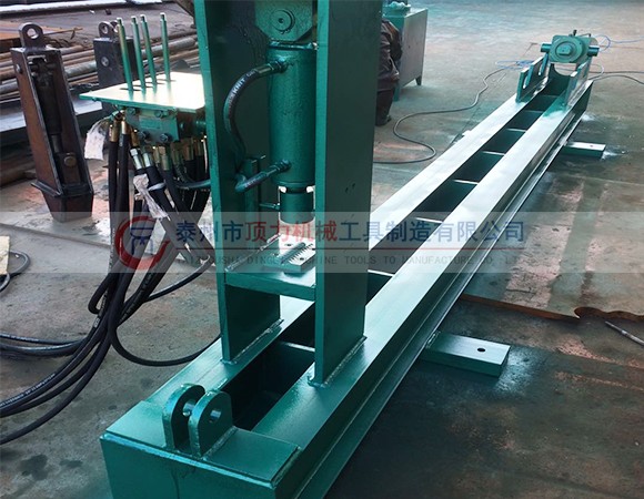 系統主要由主機、液壓泵站、操作臺等組成。因為采用了分體式結構,即主機、液壓泵站、操作臺為獨立結構,互不影響,使操作變得更加an全方便。主機主要有底座、錨桿夾緊裝置、主液壓缸、錨桿壓直液壓缸等部分組成。工作原理:把彎曲錨桿兩頭壓直。根據錨桿長度調整主液壓缸伸出行程,把兩頭壓直的錨桿放在夾緊裝置的卡頭內,推動夾緊裝置上的小液壓缸,把錨桿的兩頭夾緊,然后推動主液壓缸操作閥,主液壓缸回縮拉直錨桿,操作液壓閥,主液壓缸停止工作。回縮夾緊裝置上的小液壓缸,帶動卡頭松開錨桿,取出調直的錨桿。